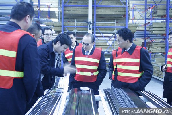 隨后,潘董事長一行與公司劉董事長等高層領(lǐng)導(dǎo)進(jìn)行了親切友好的座談。座談結(jié)束后,考察組一行在劉董事長的陪同下,前往江河幕墻建成并投產(chǎn)的全球幕墻行業(yè)最大的單體幕墻制造工廠。在國際一流、國內(nèi)領(lǐng)先的現(xiàn)代化工廠內(nèi),潘董事長一行細(xì)致考察了江河幕墻行業(yè)領(lǐng)先的技術(shù)設(shè)備、倉儲(chǔ)車間、自動(dòng)化流水線及成品包裝養(yǎng)護(hù)等,對(duì)部分江河幕墻獨(dú)創(chuàng)的技術(shù)工藝進(jìn)行了仔細(xì)詢問并觀看了技術(shù)人員的現(xiàn)場(chǎng)精密測(cè)試。參觀過程中,潘董事長屢次對(duì)江河幕墻的工廠布局、技術(shù)設(shè)備、制造工藝等展露出贊賞的笑容。